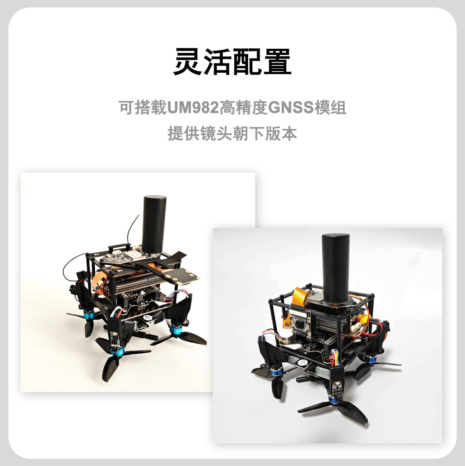 该套件搭载单目相机,支持图像识别、目标检测与跟踪。此外,支持选配深度相机和高精度 GNSS 模组,进一步提升环境感知与定位能力,拓展了无人机的应用范围和功能。
