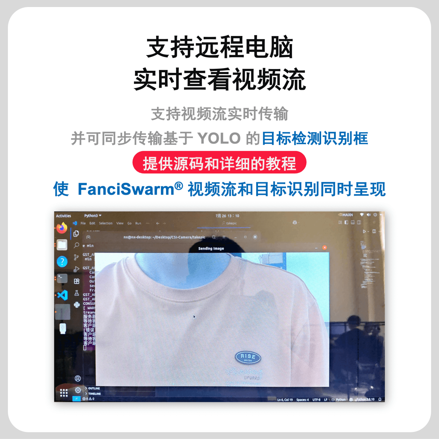 FanciSwarm® 单目视觉套件预装 Ubuntu20.04 和 ROS Noetic,开箱即用,省时高效;配套 YOLO环境快速搭建与运行指南、视频流无线传输开发指南、YOLO 算法训练与部署全流程开发指南、Aruco码视觉识别与追踪开发指南、Aruco码视觉引导降落开发指南,实时识别并精准跟踪移动目标,助力 FanciSwarm® 精准执行任务;配套自研的 FanciSwarm® 集群调度系统,赋予无人机卓越的集群协同能力......这些技术的结合,为用户提供了一个灵活、高度集成且易于扩展的平台,以实现更高级的无人机应用和研究。