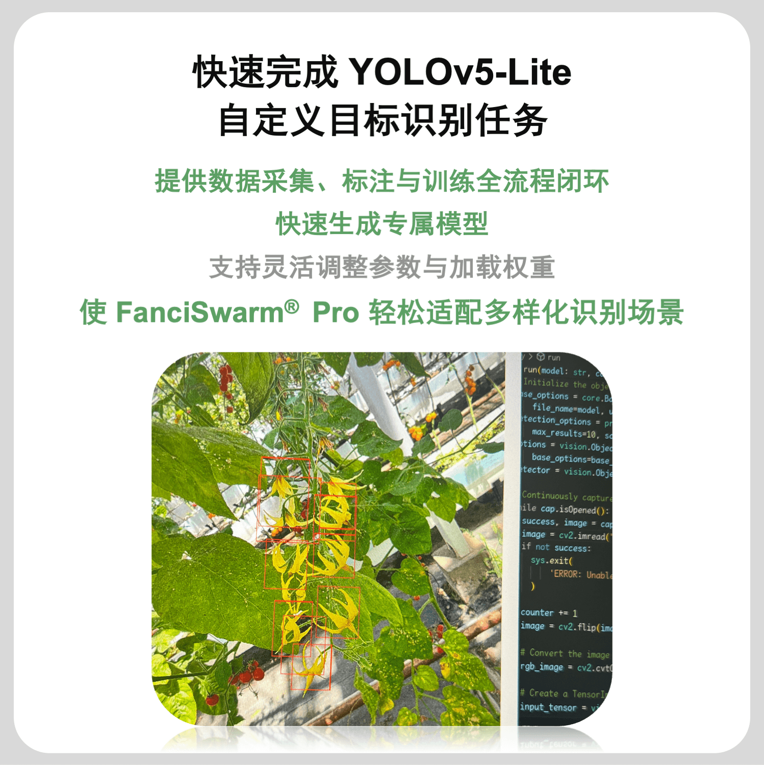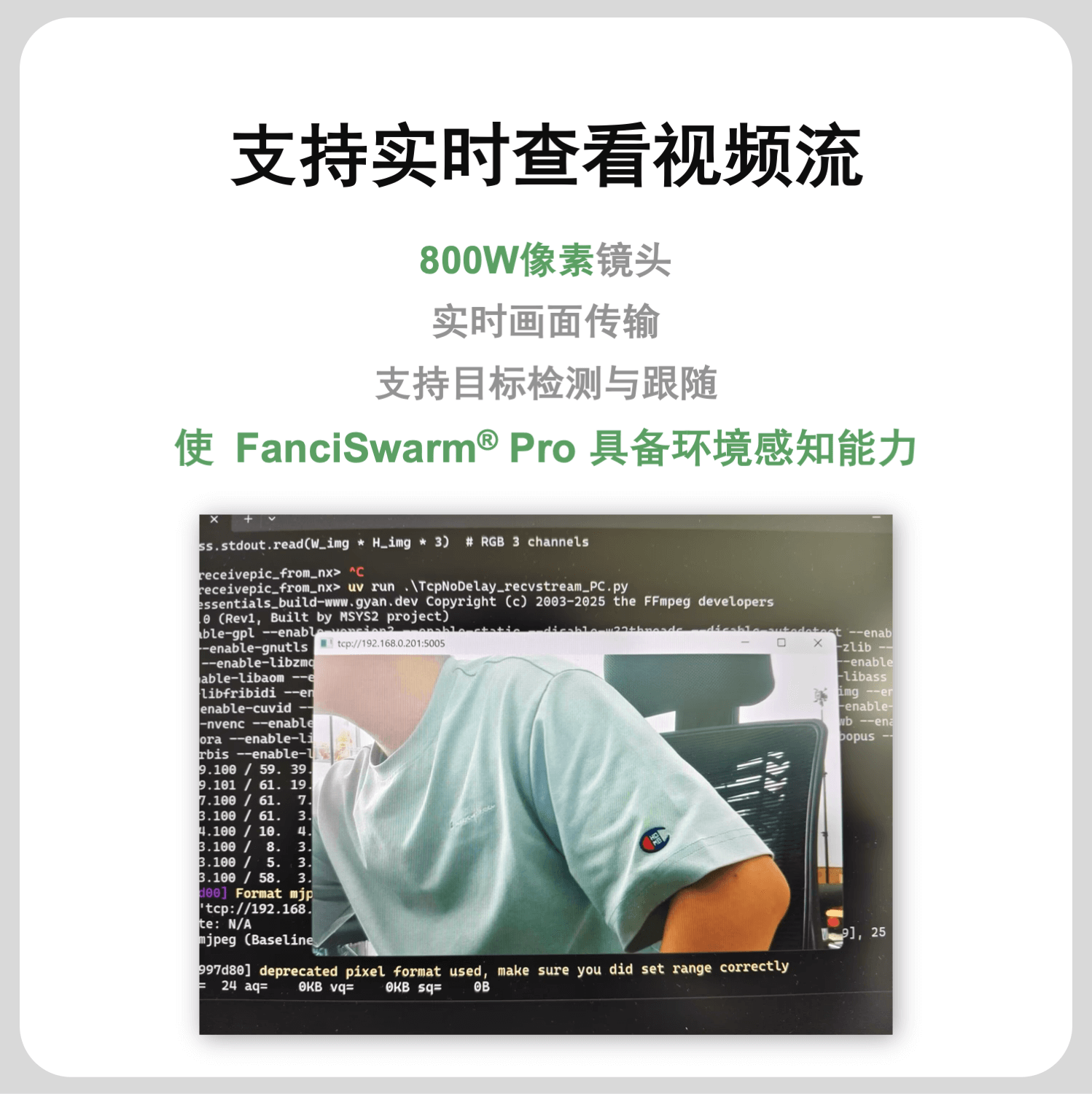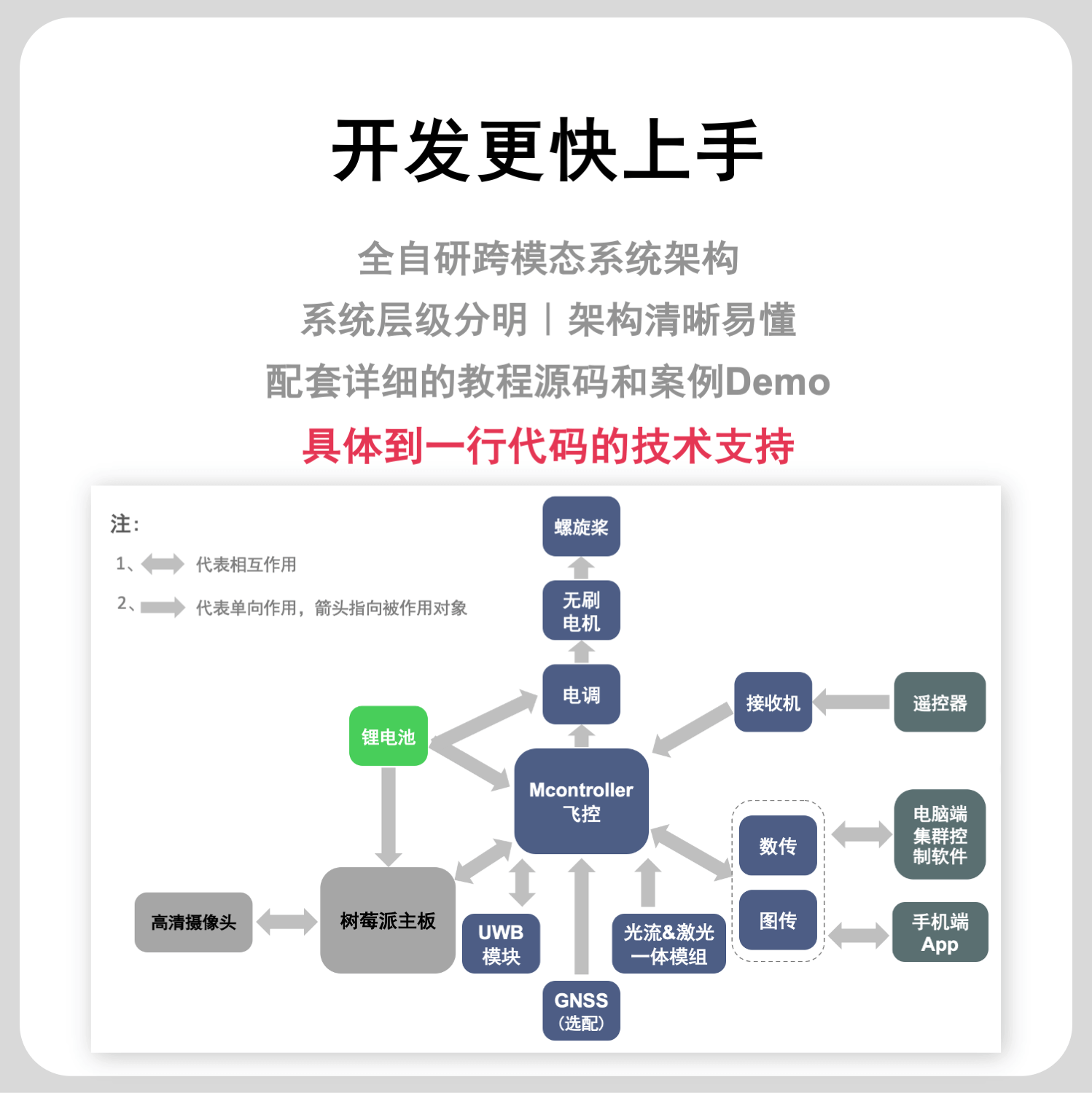 功能:FanciSwarm® Pro 树莓派 5 套件支持二次开发,配套完整的无人机智能感知与导航实例源码,支持Python控制,支持边缘计算,可实现图像识别、YOLO目标检测与跟踪、Aruco码视觉引导降落等功能,可胜任智能巡检、智能跟随、环境监测等多种应用场景。