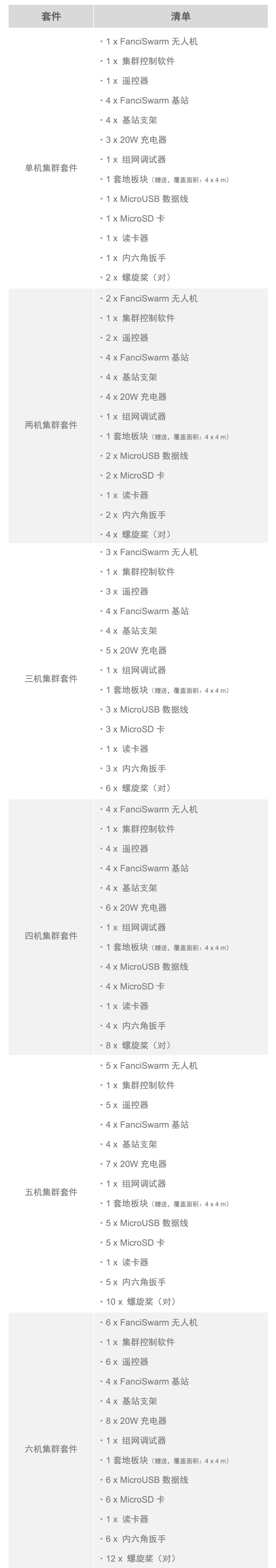 构成:由4台FanciSwarm™基站、1架或多架FanciSwarm™无人机(自带标签)以及高精度定位算法构成。