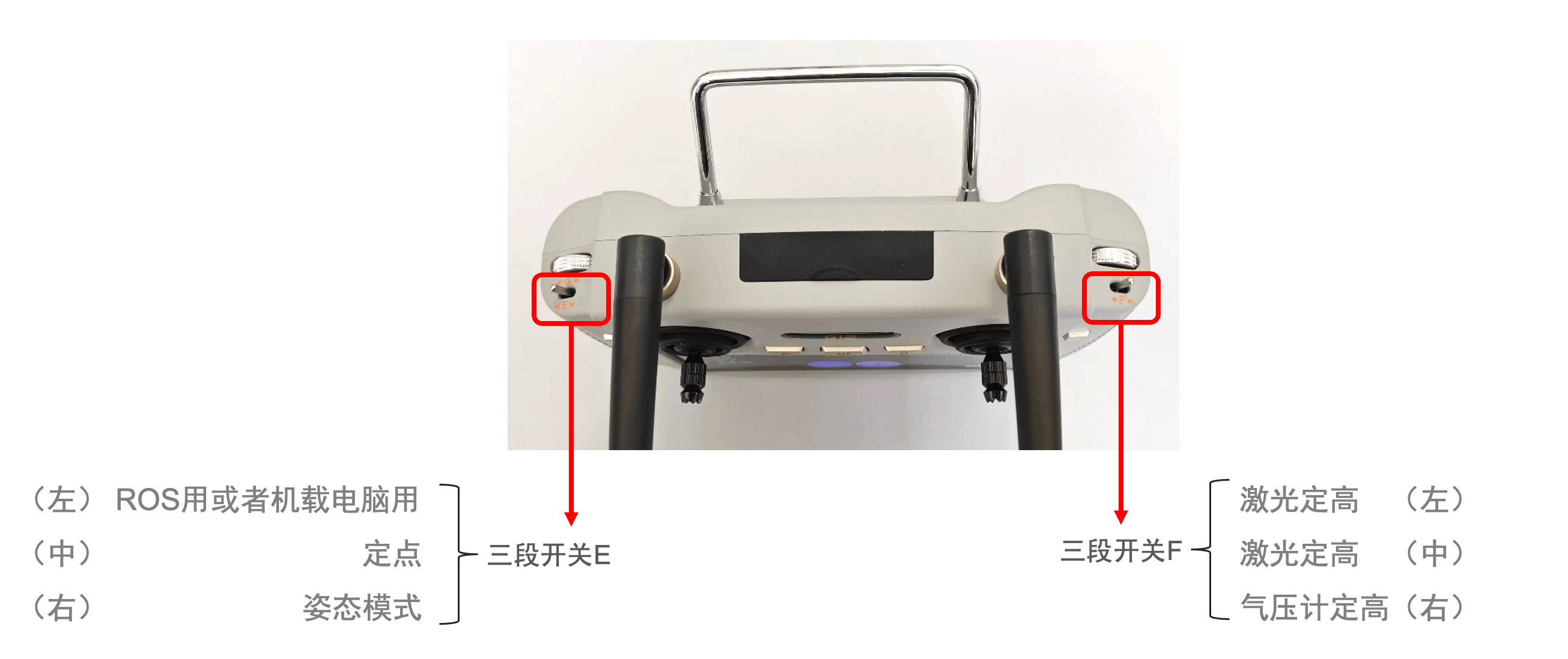 CH5默认为右边的三段开关,CH6默认为按键/点动开关,CH7默认为左边的三段开关,CH8默认为旋钮开关,其中CH5和CH8对于FanciSwarm® 用不到。