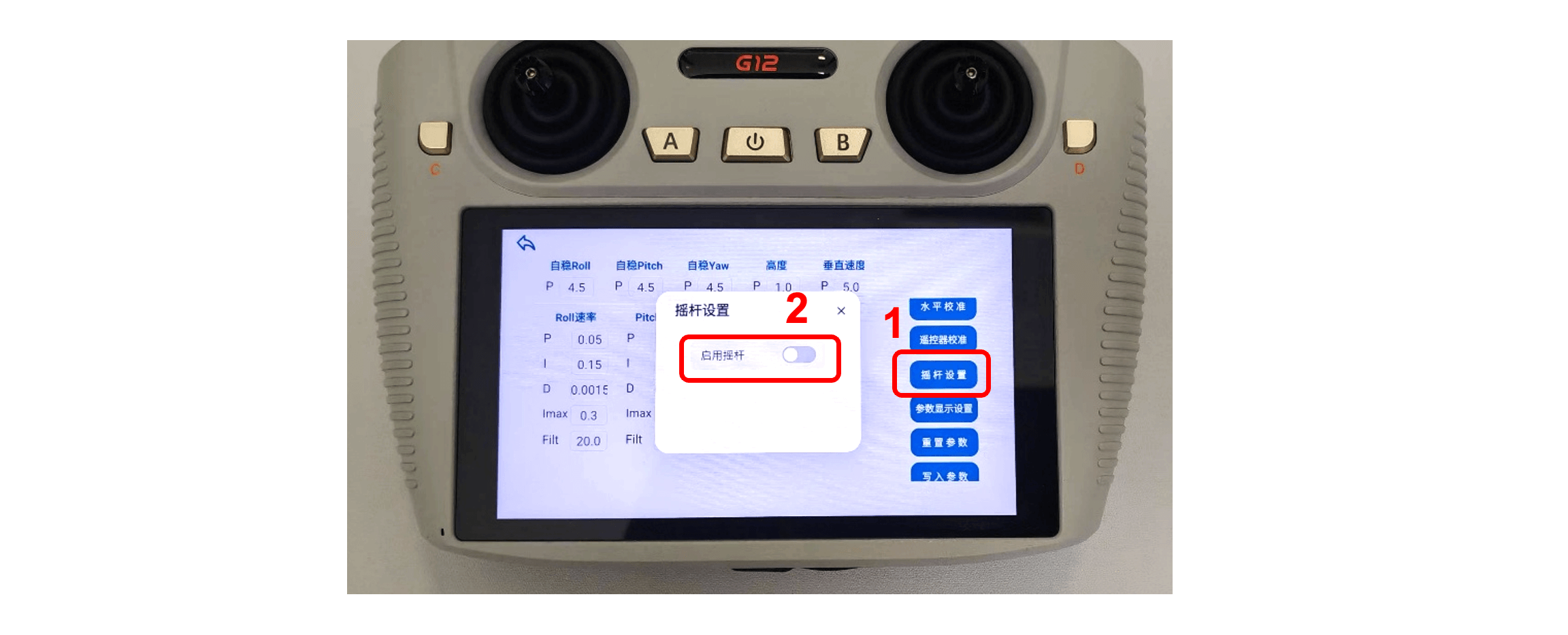 点击摇杆设置按钮,此时界面会出现如下图所示的设置界面,可选择摇杆的启用和关闭、体感控制的启用和关闭。